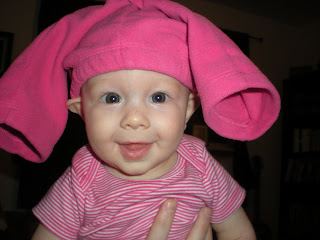 School is going well, but it's hard to concentrate and get things done at home with hailey being such an attention grabbing cutie! She continues to suck her toes, grab her pacifier, and has discovered the many ranges of her voice! She makes very loud, but very cute experimental noises! She is now 4 months old now! Going on 5! I can't believe it! She had another Doctor's appointment on Monday. I made Ryan go with me so I wouldn't cry again! It was still heartbreaking though to watch her get more shots. BUT! The Doctor said we could start trying out some baby cereals. So we got some rice cereal and this was the result:
